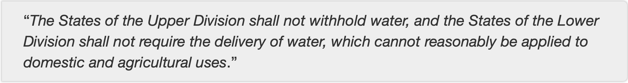The Upper Division States became concerned that the Lower Division States would continually interfere with the storage of water in the Upper Basin Reservoirs using Article III(e) of the Colorado River Compact, which states: