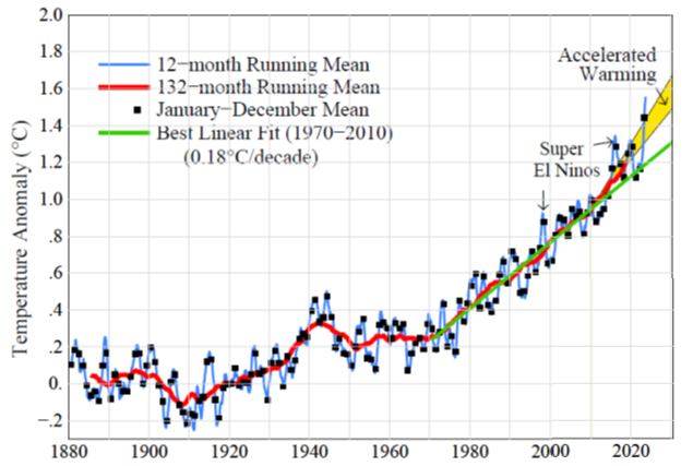 How far will it fall in the coming La Nina? If El Nino/La Nina average is ~1.5C, given Earth’s energy imbalance, we are now passing thru 1.5C, for practical purposes. See MayRpt – https://mailchi.mp/caa/comments-on-global-warming-acceleration-sulfur-emissions-observations