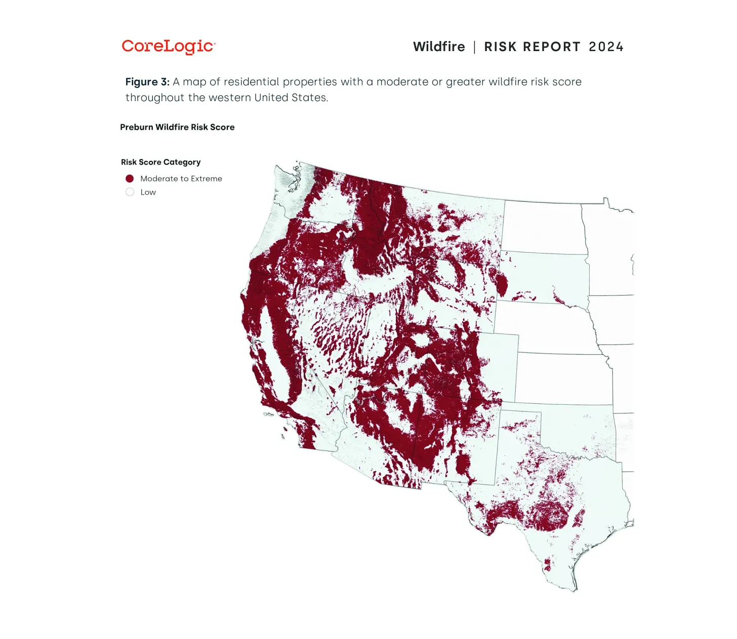 A new report from CoreLogic finds 2.6 million homes in the West are in wildfire danger zones. That includes 1.26 million in California and more than 321,000 in Colorado. Damn. I reckon a lot of those folks have or will get a grim letter from their insurance company canceling coverage or hiking prices.