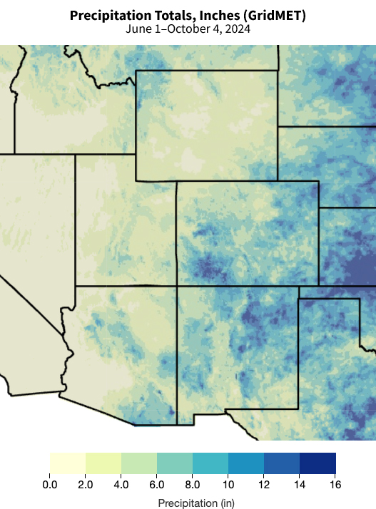 Figure 7: 2024 Monsoon Precipitation (June 1–October 4, 2024)