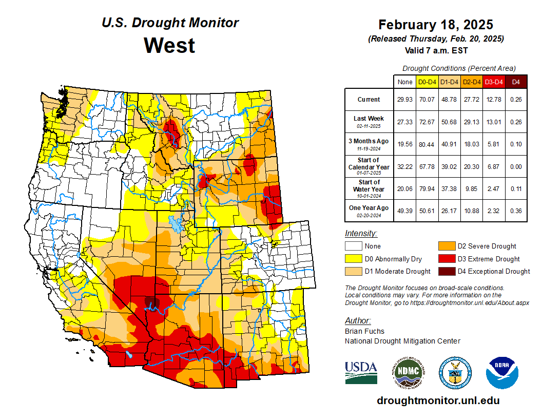 The drought across much of the mountain west follows a year when many states recorded some of their warmest average temperatures in the last 130 years. 2024 was Coloradoโs fourth-warmest year in that time period, and it was the second-warmest year for New Mexico and Utah and the third-warmest year for Arizona and Wyoming…