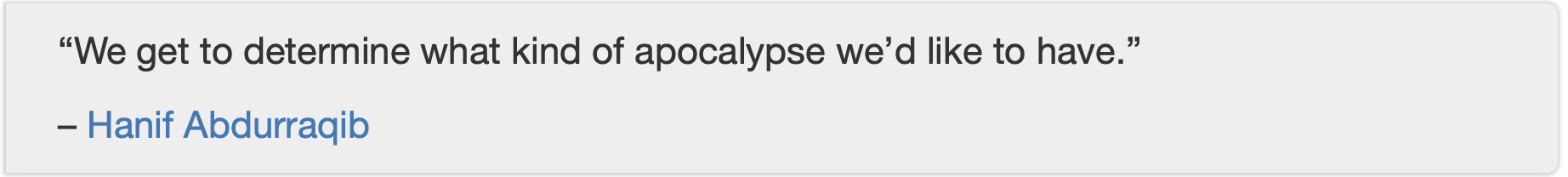 It’s on us to engage in the big, messy conversations about what we want that apocalypse to look like.