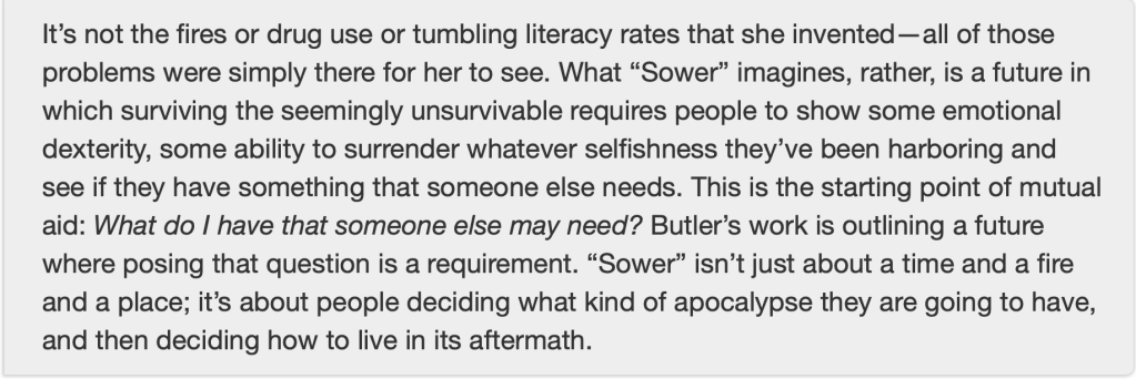 Abdurraqib is riffing on Octavia Butler’s Parable of the Sower, which eerily presaged this year’s L.A. fires, and the deep reality of owning our fates: