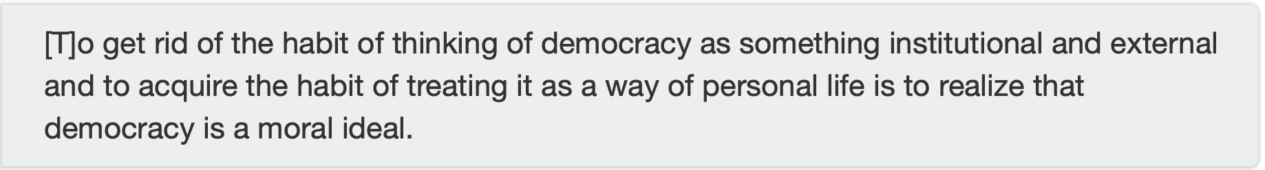 A decade later, in a talk entitled “Creative Democracy—The Task Before Us,” Dewey said this: