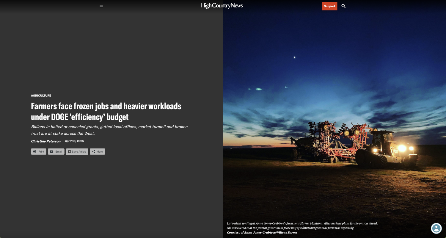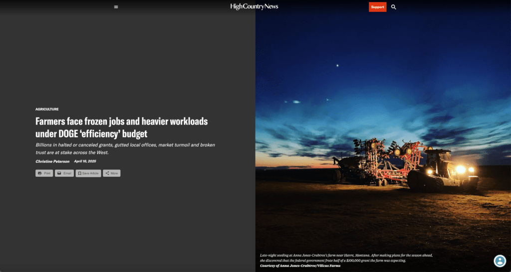 Farmers face frozen jobs and heavier workloads under DOGE โefficiencyโ budget — Christine Peterson — (High Country News)