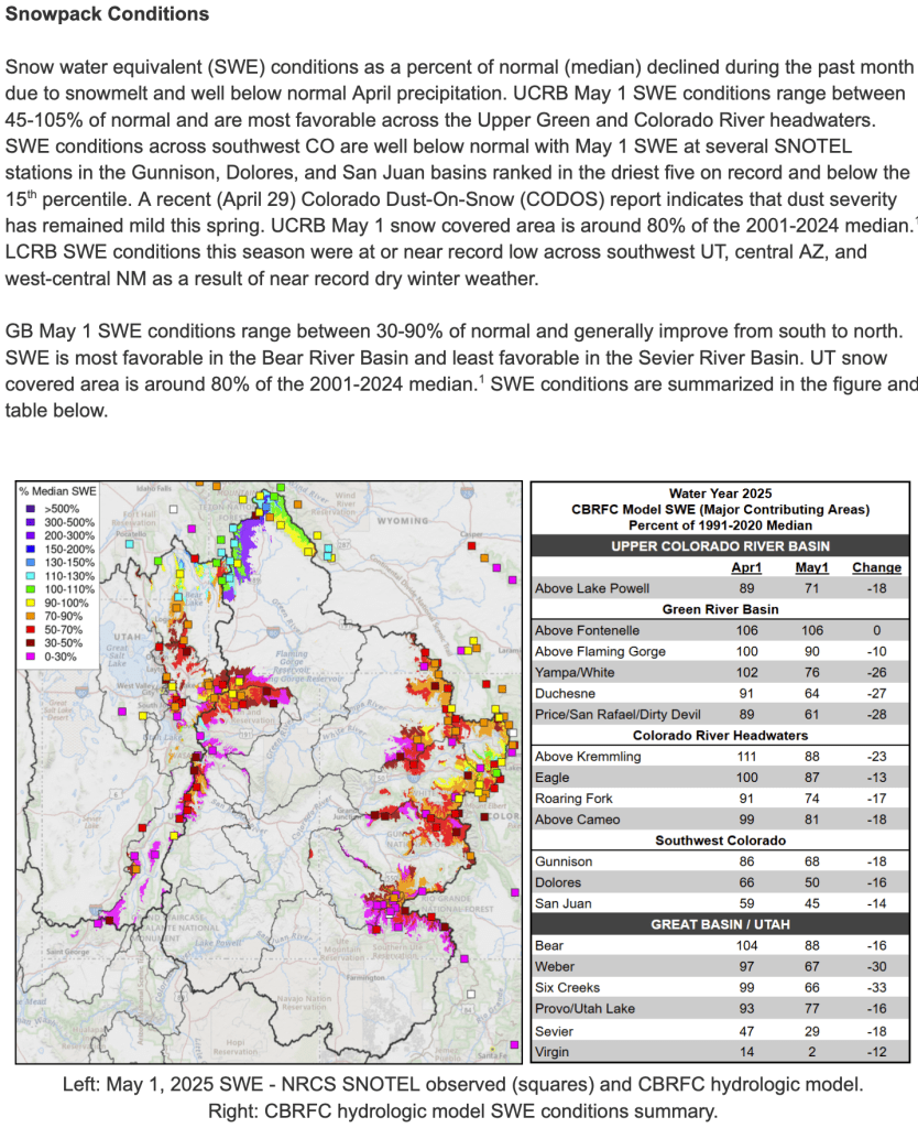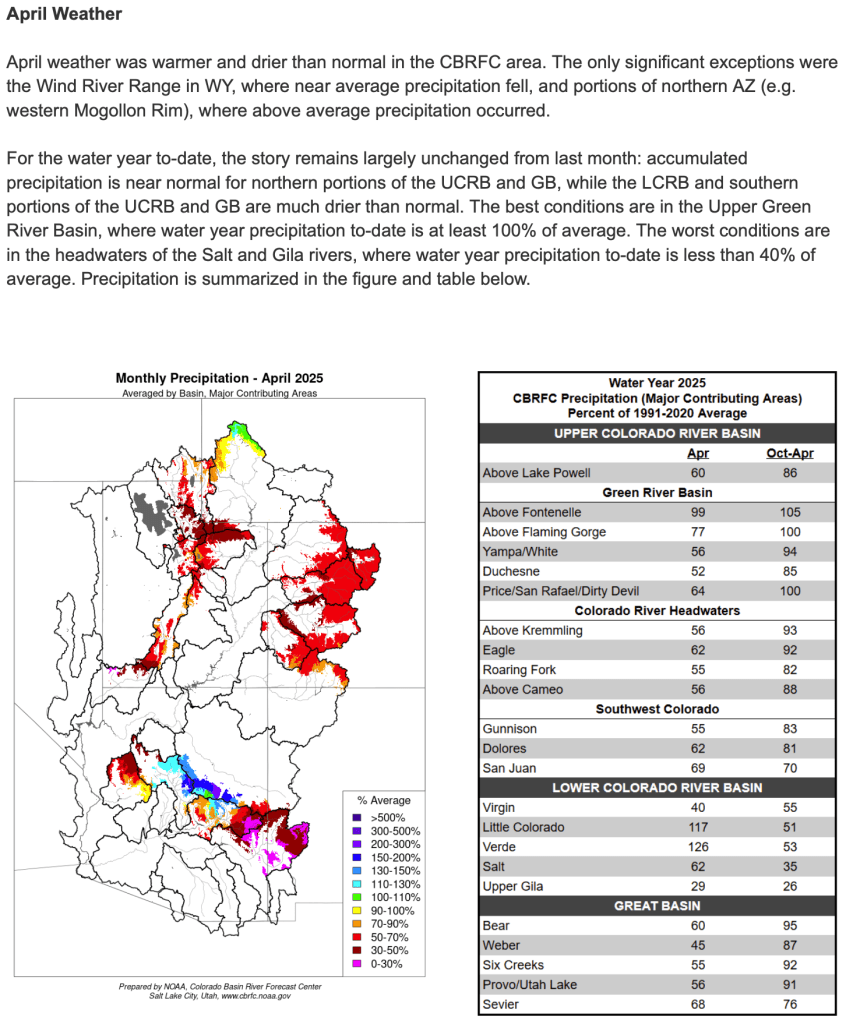 Colorado’s southern mountains had another miserable snowpack. This is not good for the Colorado or Rio Grande rivers. It fits in with a theme.