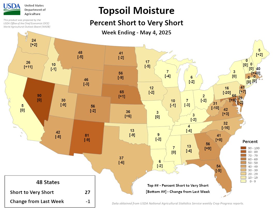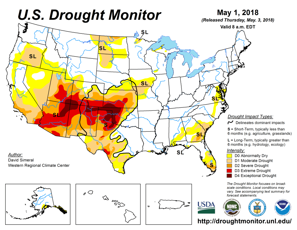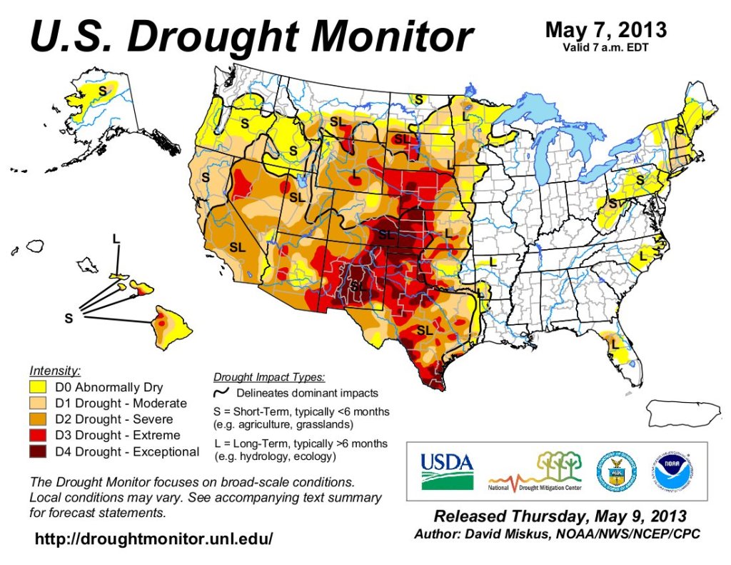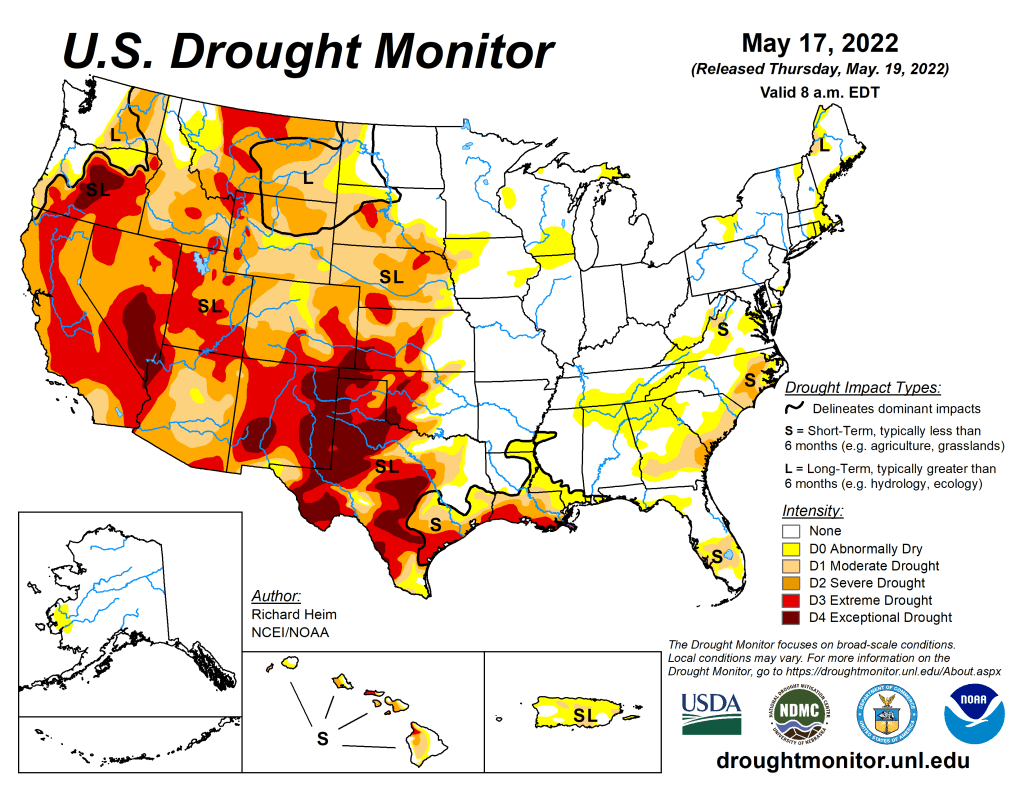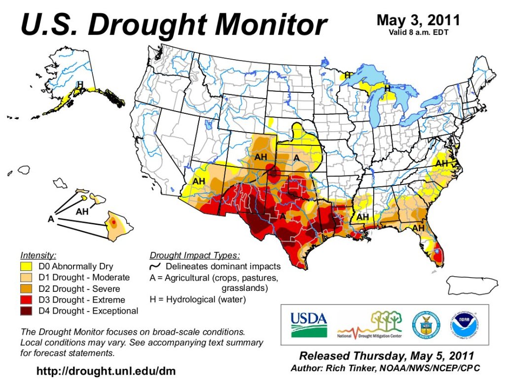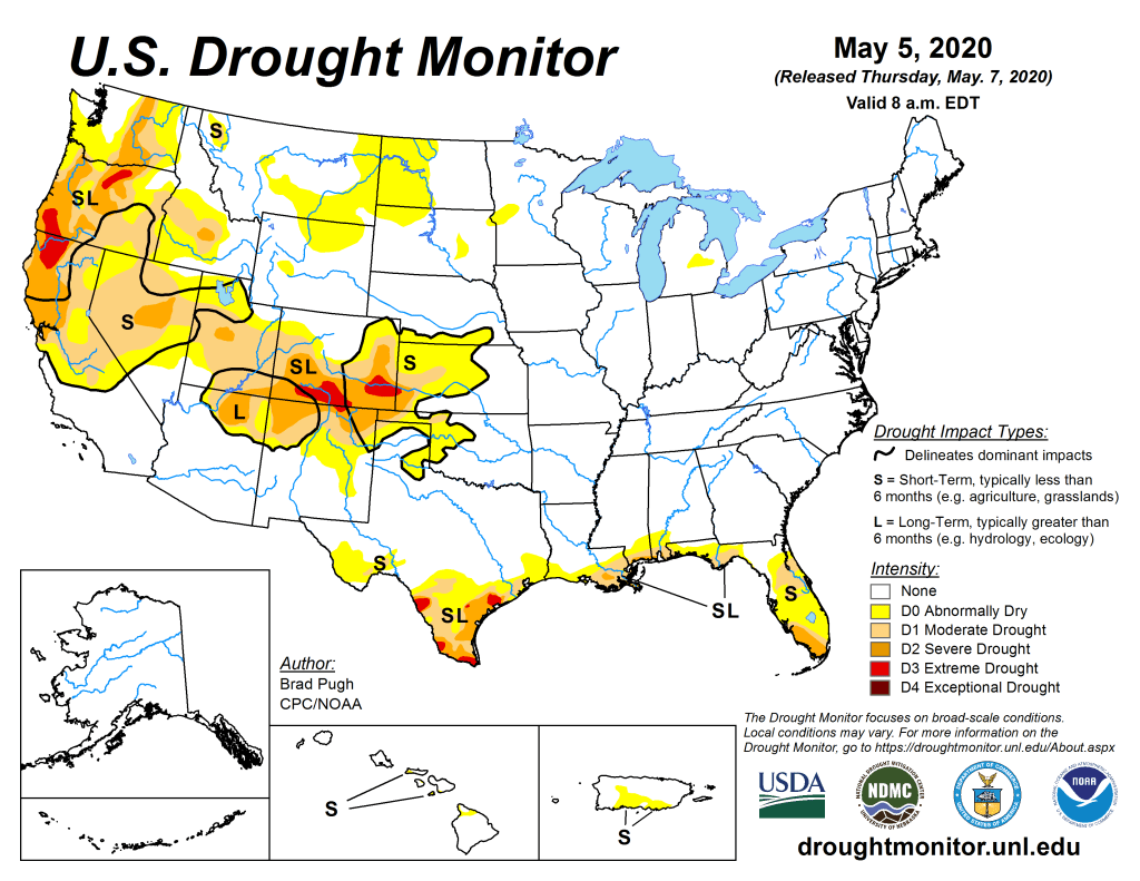 Precipitation fell across much of the U.S. this week, with heavier amounts (> 1 inch) falling from portions of the central and southern Plains eastward to the East Coast, and also in parts of the West, Hawaii, and southern Alaska. Much of the Southeastern U.S., from eastern Texas to North Carolina, reported weekly rainfall totals between 2 to 10 inches, while similar amounts (2 to 6 inches) were reported in parts of the Northeast. Above-normal precipitation supported drought improvements across large portions of the South, Southeast and Northeast, and in parts of the Southwest and High Plains. Conversely, weekly precipitation totals were below normal across much of the West to the Midwest. Drought and abnormal dryness were expanded or intensified in northern portions of the West and Midwest, as well as parts of the Southwest and High Plains. Temperatures were above normal across much of the U.S. this week, with areas of the north-central U.S., from central Montana to Minnesota, reported temperatures 9 to 20 degrees above normal. Below-normal temperatures were observed from the southern Plains to parts of the eastern Midwest, where departures were up to 10 degrees F below normal, with the largest departures being reported in parts of Texas…