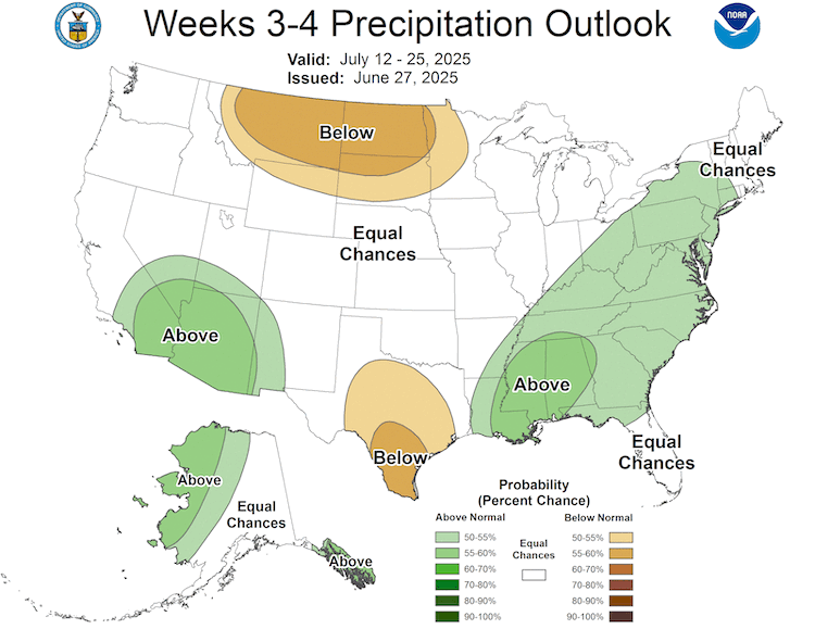 - The 2025 North American Monsoon began last week in parts of New Mexico and West Texas, bringing helpful rains to drought-stricken areas but also dangerous flooding. Other states (Arizona, Colorado, California, Nevada, Utah) await their first monsoonal precipitation.