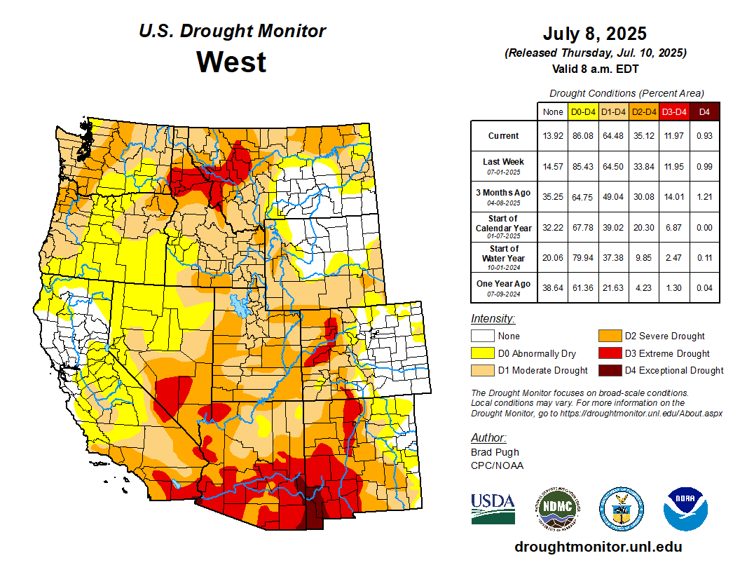 West Drought Monitor map July 8, 2025.