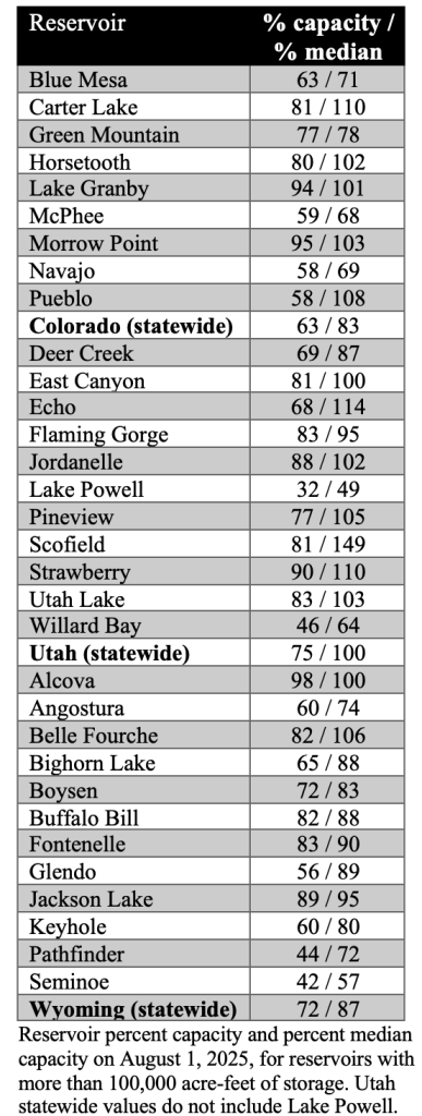 Might fortunes soon be reversed? Not likely in months ahead, said Fleck and his team. They noted this summer’s weak monsoon for most of the upper basin coupled with the seasonal outlook by the National Oceanic and Atmospheric Administration. Together, they point to a warmer and drier than average fall.
