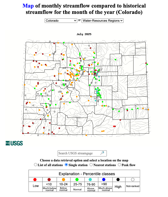 This past winter was mediocre, near average snowfall in some basins but among the worst in the San Juans. Spring was warm or more in many places, and rains in July were almost entirely absent.
