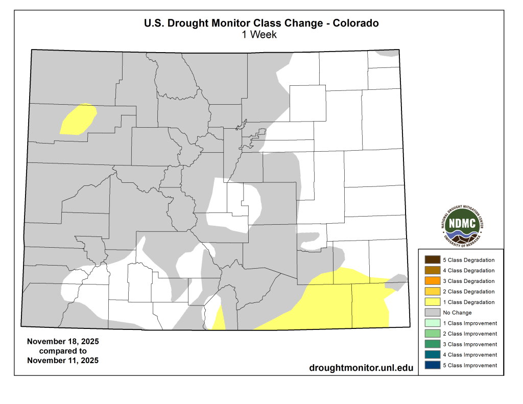 Primarily dry and warmer-than-normal weather occurred in the High Plains region this week, with the exceptions of east-central South Dakota and some high-elevation areas of Colorado and Wyoming. Temperatures in Wyoming and parts of eastern Colorado were 12 or more degrees above normal this week, while eastern parts of the Dakotas, Nebraska and Kansas were mostly 3-9 degrees warmer than normal. Short-term precipitation deficits and decreasing soil moisture in some areas led to expansions and development of abnormal dryness and moderate drought in parts of eastern and central Nebraska. In western Nebraska, abnormal dryness and moderate drought expanded under similar conditions, while severe drought also developed where more substantial longer-term precipitation deficits were taking place. In and near the Kansas City area, moderate and severe drought locally expanded where soil moisture levels decreased and short-term precipitation shortfalls grew. Abnormal dryness expanded across the southeast Colorado plains where short-term precipitation deficits grew, while moderate drought filled in in northwest Colorado where short-term dryness aligned with long-term precipitation deficits…