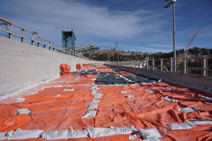 “We have to stop placing roller-compacted concrete when the temperatures drop below freezing,” said Casey Dick, deputy program manager for the Gross Reservoir Expansion Project.