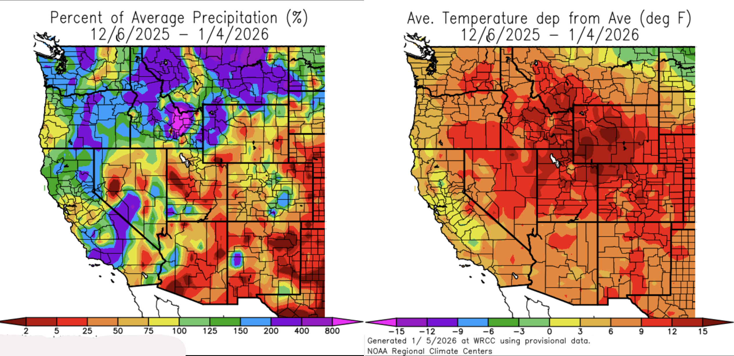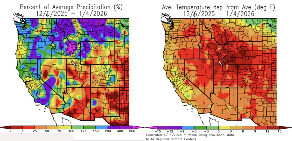 During those years, however, the lack of snow was caused by a lack of precipitation. This year, it’s the result of a combination of light winter precipitation and unusually warm temperatures throughout December and early January. A recovery will require not only more snowfall, but also cooler temperatures, making the outlook a little grimmer.