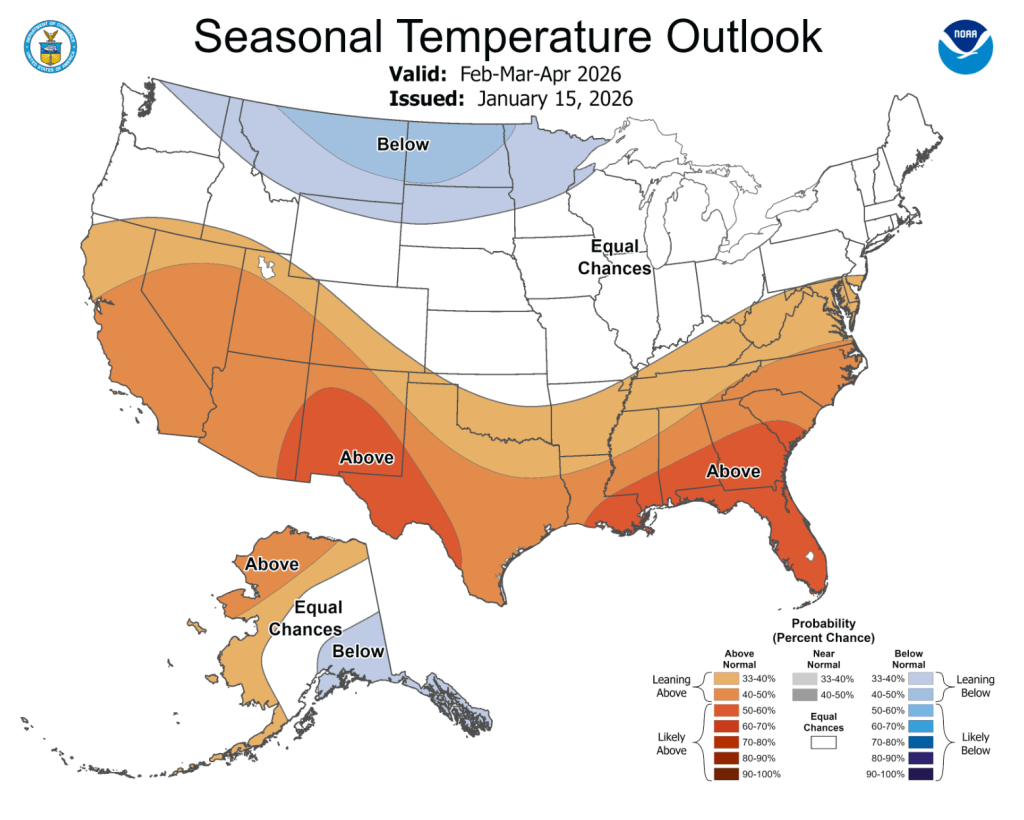 As of mid-January, La Niña conditions persist in the eastern Pacific Ocean. Pacific Ocean conditions are expected to warm and there is a 69% probability of neutral conditions emerging in the next two months. Despite the forecast for warming Pacific Ocean temperatures, ocean temperatures decreased slightly in late January. NOAA monthly forecasts for February suggest an increased probability for below average precipitation across the entire region and above average temperatures for Colorado, Utah and southwestern Wyoming. On the three-month timescale, NOAA forecasts indicate an increased probability of below average precipitation in southern Colorado and southern Utah. February-April temperatures are likely to be above average in Utah and southwestern Colorado.