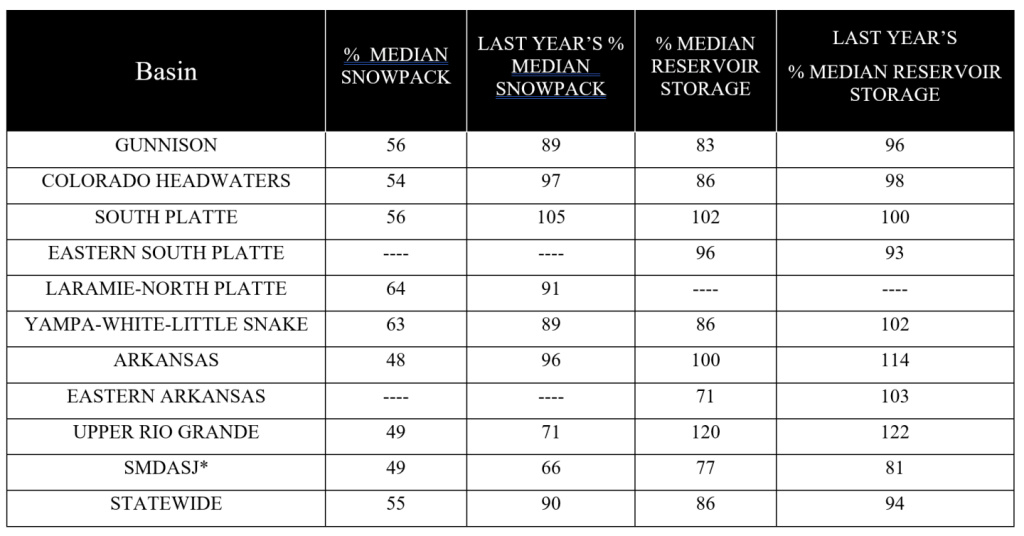 * *For more detailed information about February mountain snowpack refer to the February 1st Colorado Water Supply Outlook Report. For the most up to date information about Colorado snowpack and water supply related information, refer to the Colorado Snow Survey website.