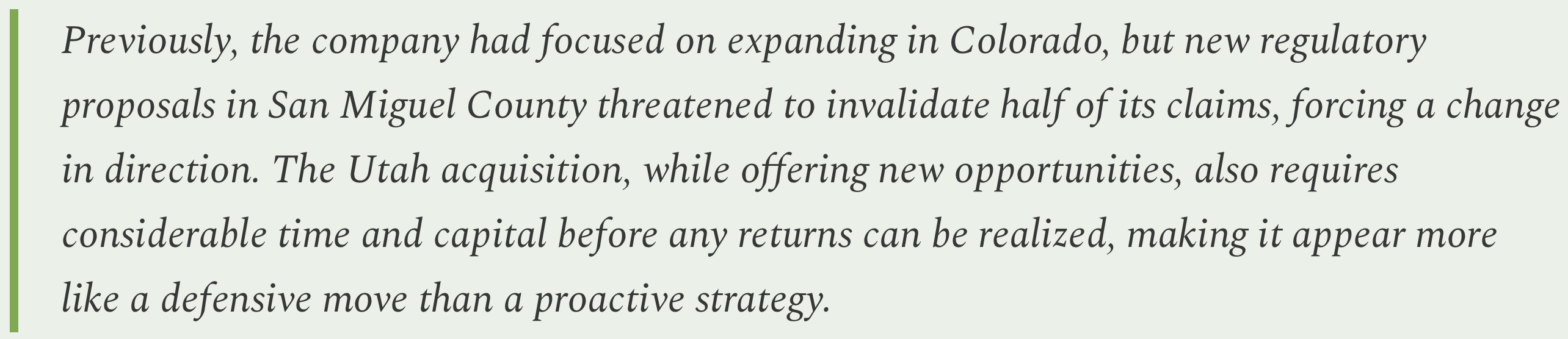I knew that San Miguel County was working on mining regulations — which were adopted this January — but I’m honestly a bit surprised that they chased this company away from a viable project. Which could indicate that the project wasn’t actually all that viable in the first place.
