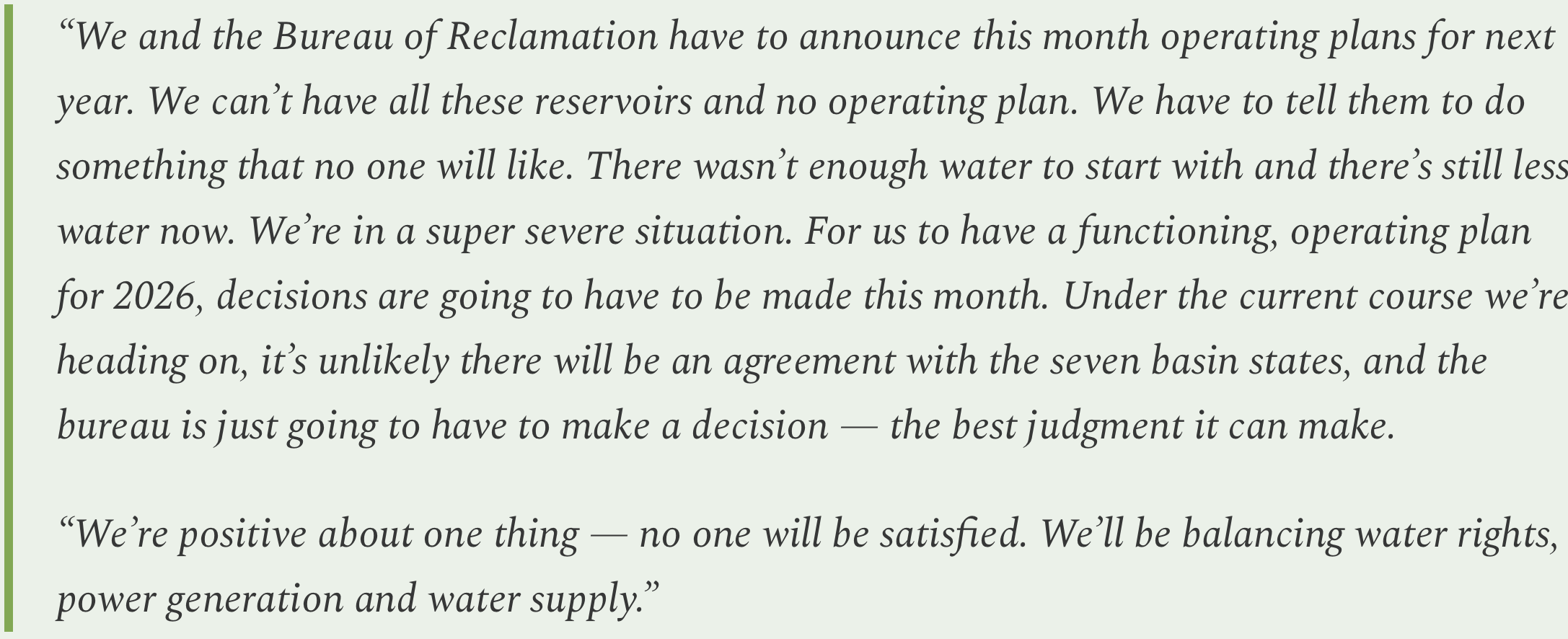 The answer is still a mystery, but Interior Secretary Doug Burgum finally hinted coyly about the government’s potential approach (Interior oversees the Bureau of Reclamation, which runs most dams). The Arizona Star’s venerable environmental reporter Tony Davis reports that Burgum told a Tucson roundtable this week: