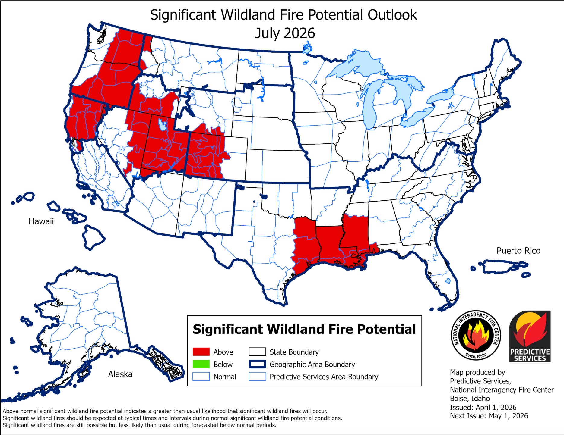 Maybe we’ll have a really wet spring and summer. If not, well, this is what the National Interagency Fire Center says we can expect. Not great.