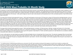 Through the 2019 Drought Response Operating Agreements, Reclamation is intending to release 660,000 acre-feet to 1 maf from Flaming Gorge Reservoir from April 2026 through April 2027. In addition, Reclamation is intending to reduce the annual release volume from Lake Powell to Lake Mead by 1.48 maf—from 7.48 maf to 6.0 maf—through September 2026 by utilizing section 6E of the Record of Decision from the final 2024 Supplemental Environmental Impact Statement for near-term Colorado River Operations.