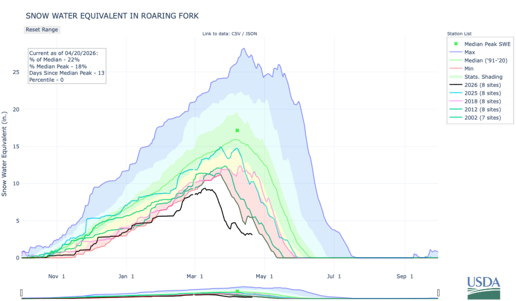 Roaring Fork Valley governments and fire and law enforcement agencies are gearing up for what is anticipated to be a much warmer and drier summer than normal. The Roaring Fork Valley is experiencing a “record breaking year” for drought, snowfall and snowpack, Erin Walter, a meteorologist with the National Weather Service, said during a press briefing Thursday with multiple local emergency management and fire leaders. The agencies are emphasizing both individual preparedness and cross-agency preparedness in hopes of mitigating wildfires or minimizing the damage of wildfires if they occur this summer.