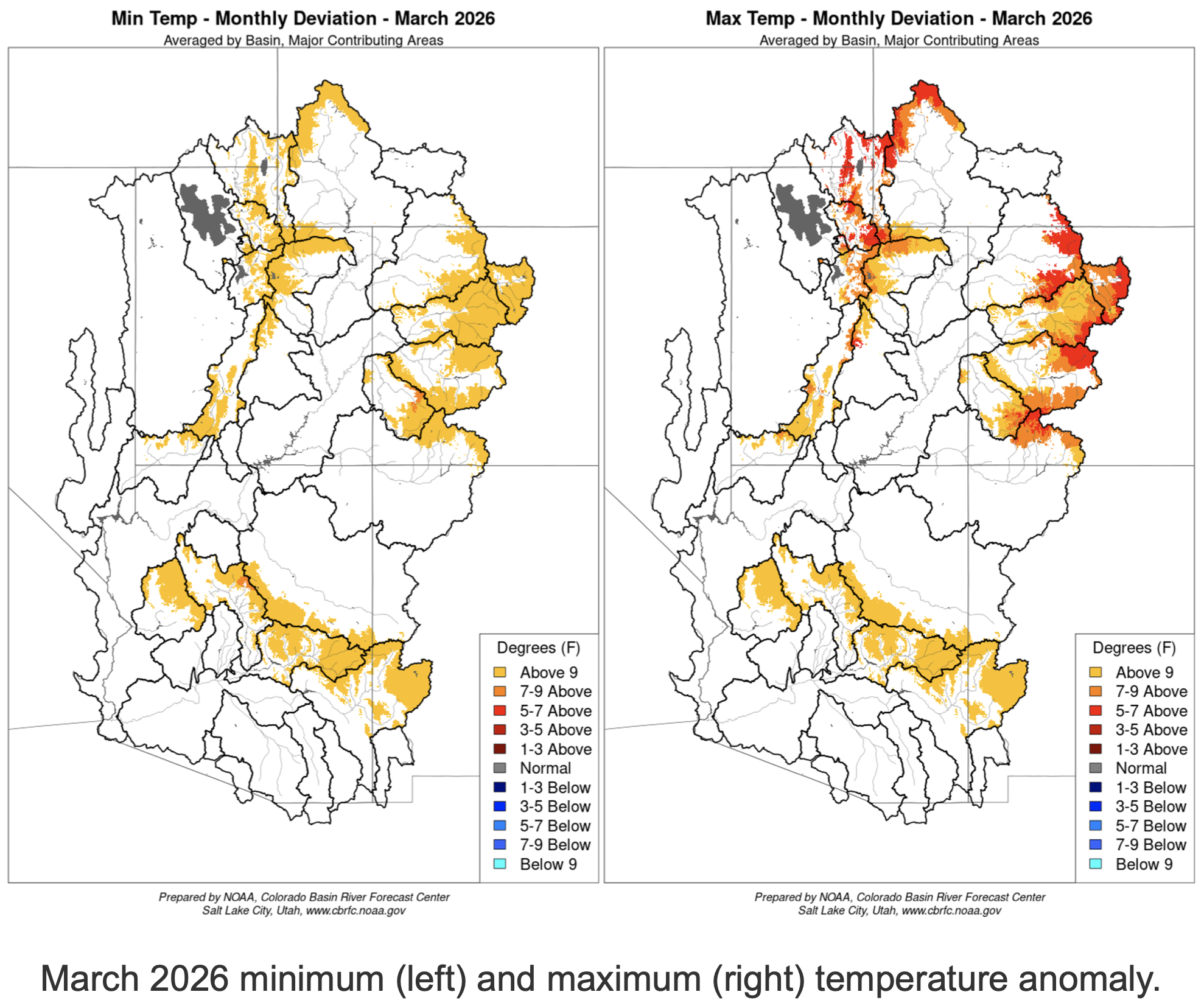 Across the Colorado River Basin, average daily temperatures during March were the warmest on record. This wreaked havoc on an already so-so or less snowpack.