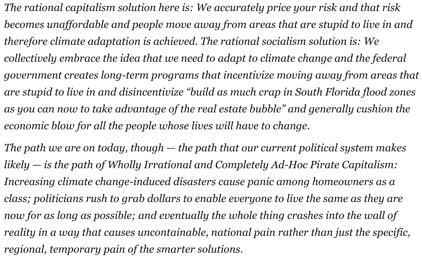 And the late Mike Davis’s “The Case for Letting Malibu Burn” should be required reading in these times. And yes, it’s quite a bit more nuanced than the title might suggest. Davis gives a good history of post-colonial fires in the Malibu area and explains how in 1930 Frederick Law Olmsted, Jr., called for turning 10,000 acres there into a public park (that could have burned in natural cycles, without destroying homes).