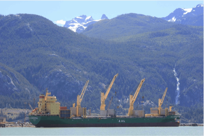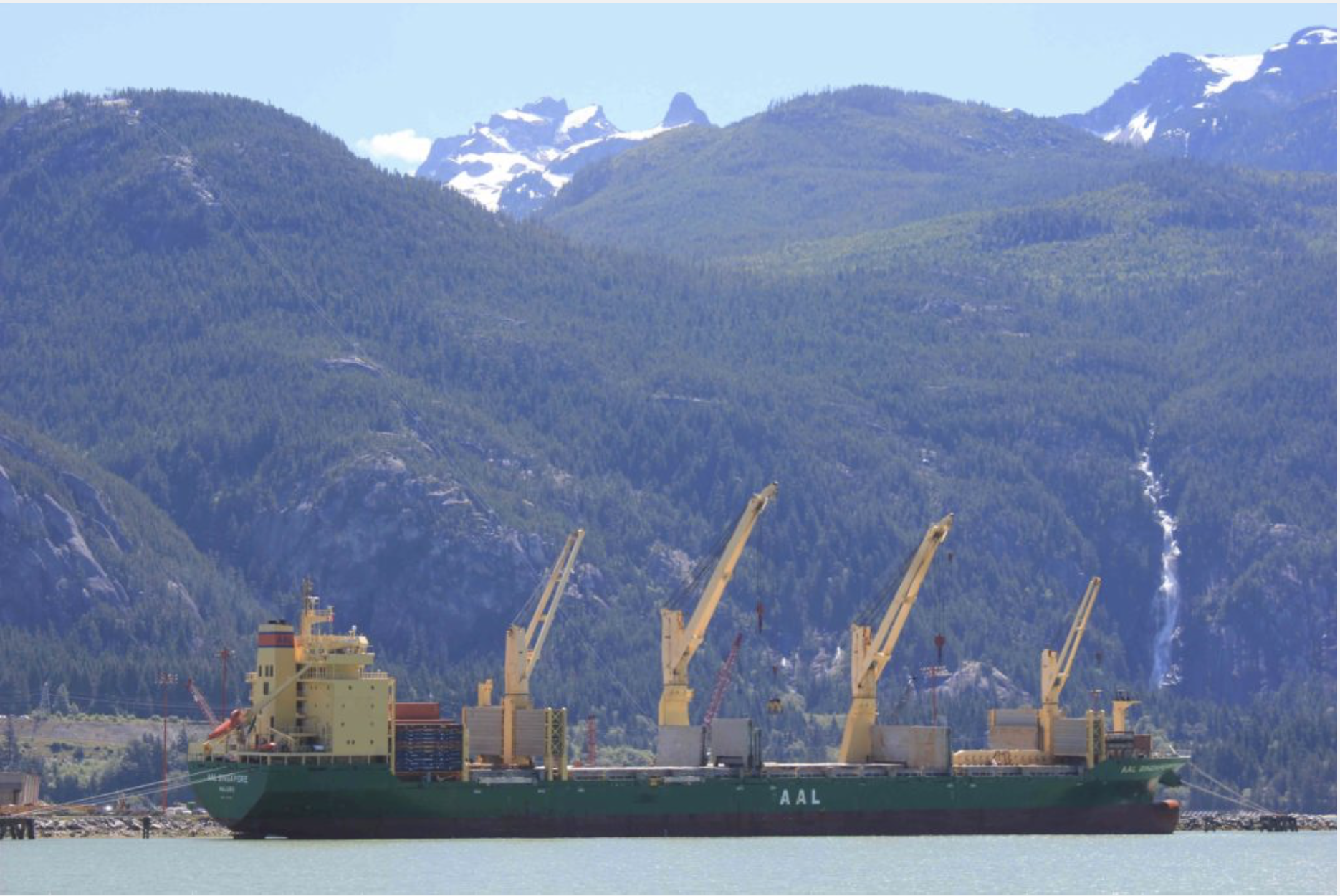 A freighter at the dock at Squamish, B.C. Photo credit: Allen Best/The Mountain Town News
