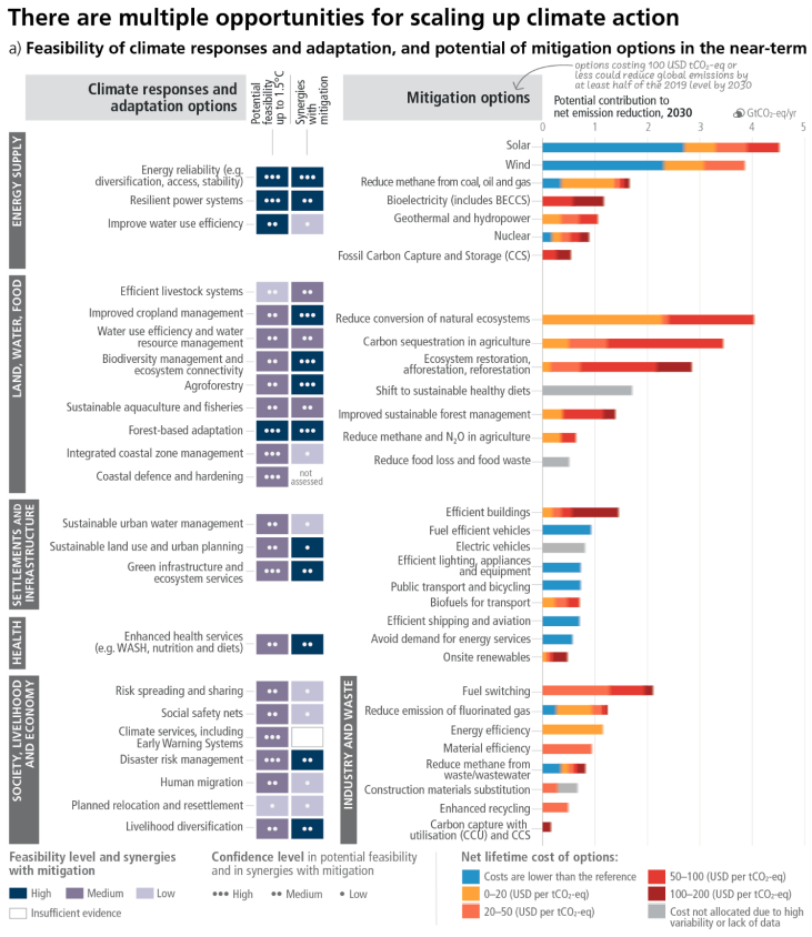 The report shows that many options for tackling climate change – from wind and solar power to tackling food waste and greening cities – are already cost effective, enjoy public support and would come with co-benefits for human health and nature.
