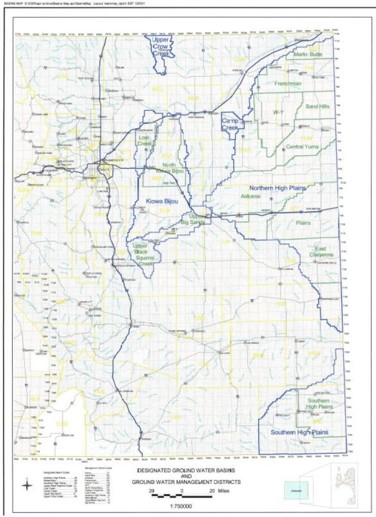Colorado designated groundwater basins. Map credit: Robert Longenbaugh September 14, 2014