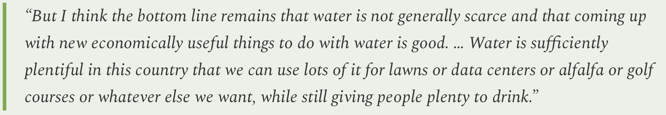 “We’ve got to find better ways of using what we have. Not producing more water that doesn’t exist,” he said.
