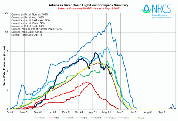 Arkansas River Basin High/Low graph May 22, 2017 via the NRCS.