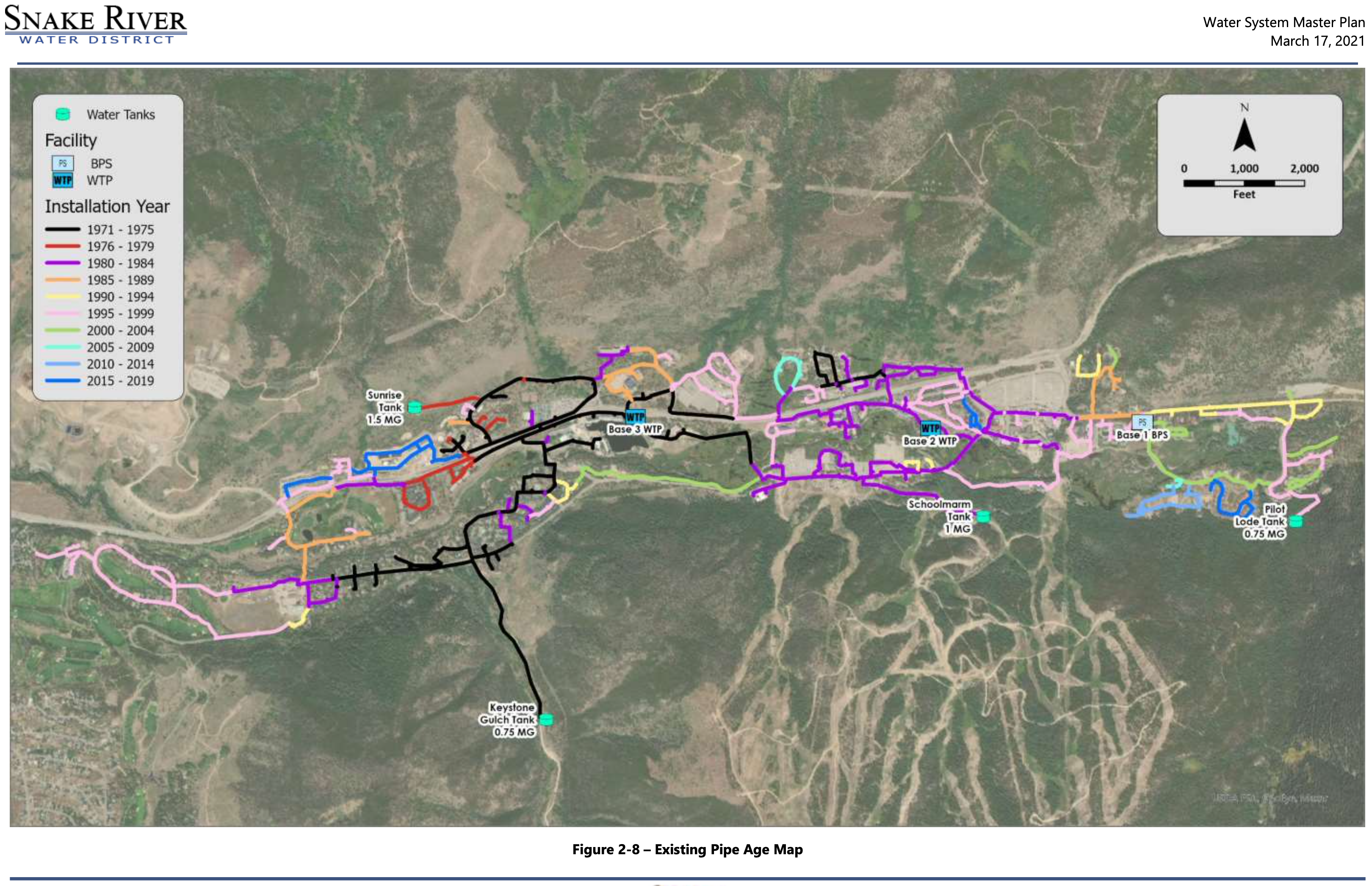 The district has three base plants, each with its own storage and water filtration system. The second base, which is also home to the district’s office, is likely to need an additional storage tank to serve the high-density area of Keystone Resort, as well as a pump station that can transport water uphill from the third to the second base.