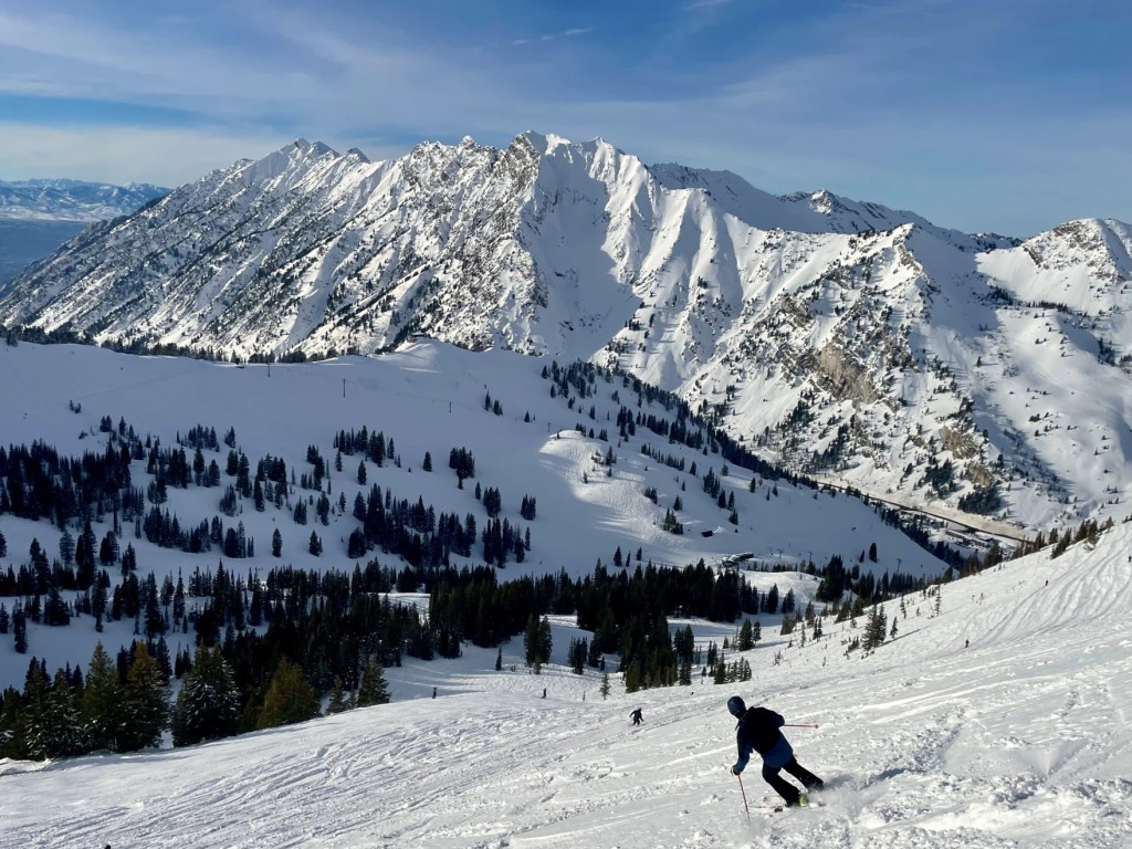 Skiers descend Alta Ski Area in Utah on January 12, 2023. Some ski areas see promise in the state’s cloud seeding program as a means of creating more reliable snow on the slopes. Alex Hager/KUNC
