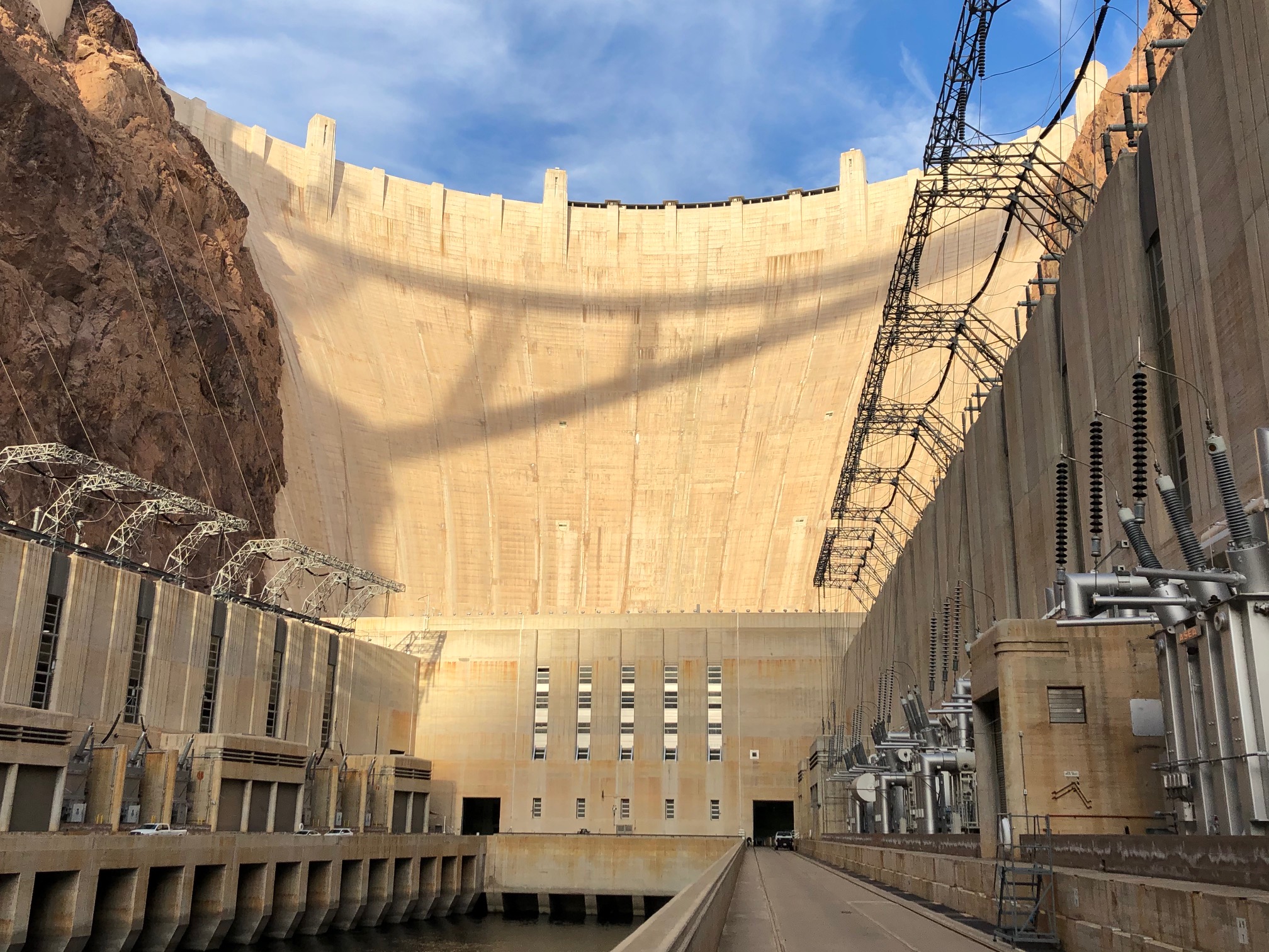 Hoover Dam from the Arizona Powerhouse deck December 13, 2019. As John Fleck said in a Tweet, “Friends who have the keys showed us around this afternoon.” Thanks USBR.