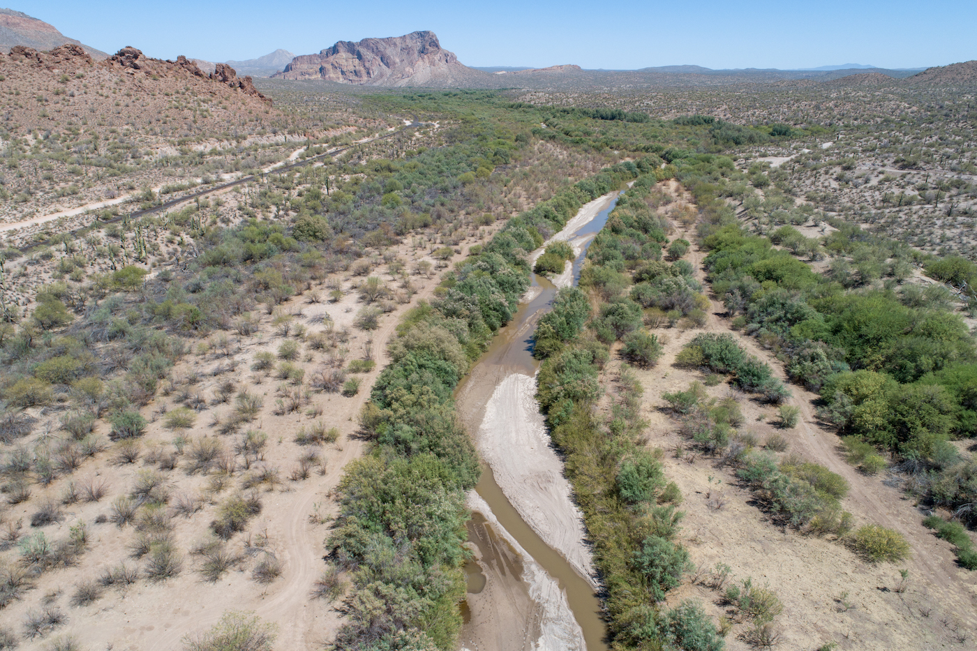 Some of the river’s bends, even from miles away, are visibly dry. That’s in part because the monsoon that typically refills it in the mid-summer months has been absent, but also because of “push-up” dams farmers create by bulldozing small earthen walls in the river. The proposed diversion would replace these mud and rock dams, which the river eventually breaks down, with concrete, and take from one spot four times as much water as what’s currently withdrawn in three push-up dams. Taking more water from one place, Schulke and Siwik worry, would increase both the length of dry stretches and their duration, which could devastate aquatic and riparian species and the rest of an ecosystem that relies on flooding rivers to recharge nutrients and groundwater and sprout seeds.
