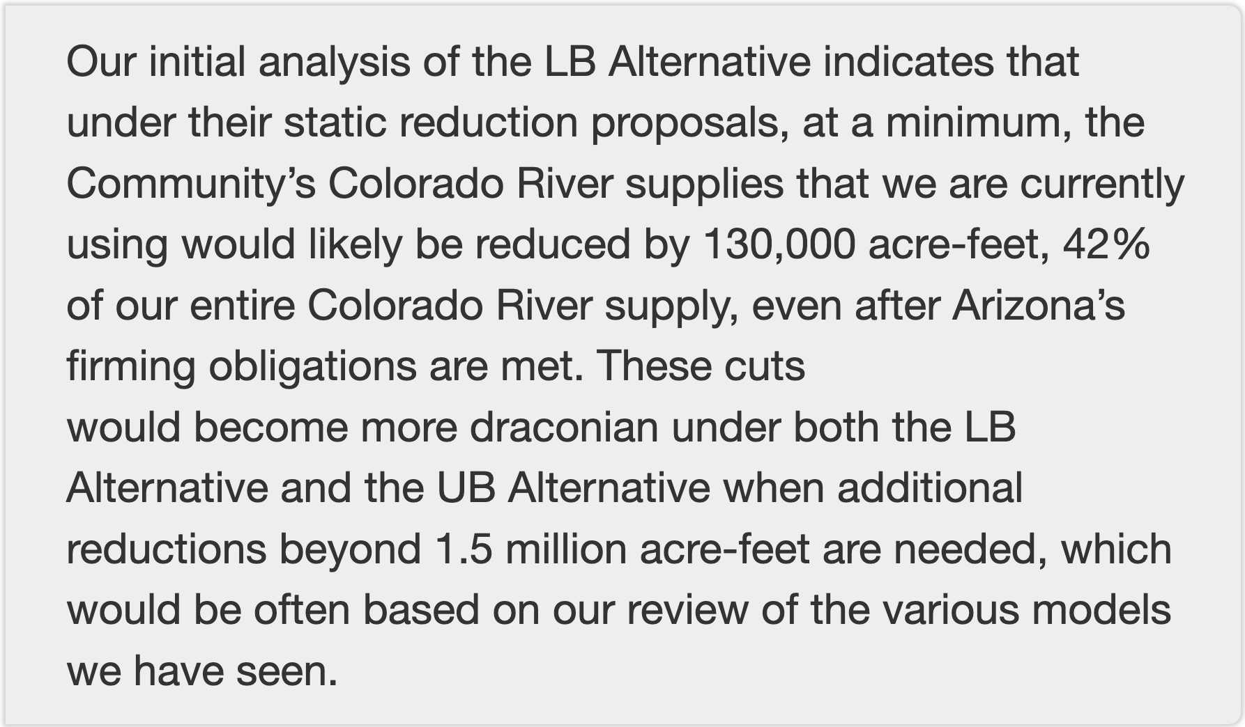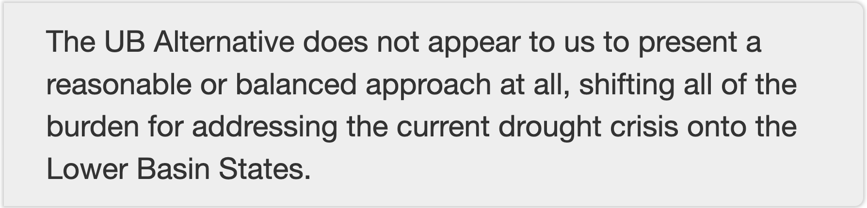 For example, he can imagine cuts that are triggered by lowering reservoir levels. At a certain point, lower basins must reduce their use by X amount and upper basin states by Y amount.