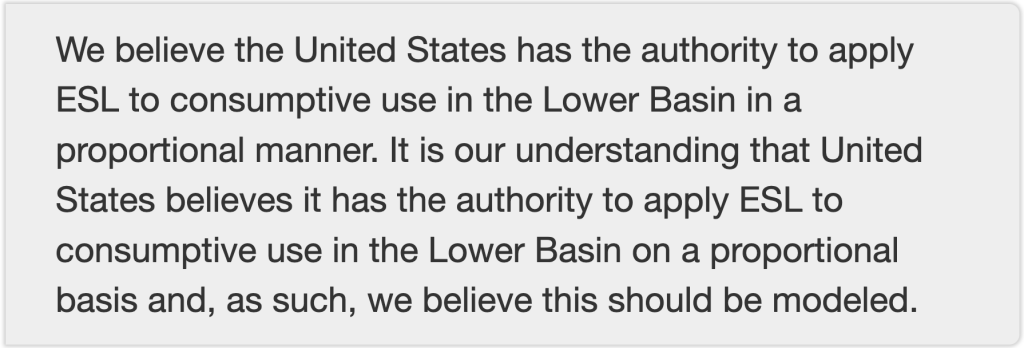 We leave a discussion of Lower Basin tributary use for another post but note that in both the cases of the Upper Basin use and Lower Basin tributary use, the numbers are entangled in the current Upper Basin-Lower Basin feud, which makes serious efforts to think about how to manage water at the Basin scale, rather than simply defending parochial interests, much more difficult. It is important that the general public not employed by a state or water agency, and therefore not beholden to local parochial interests, help the basin community as a whole navigate these technical issues.