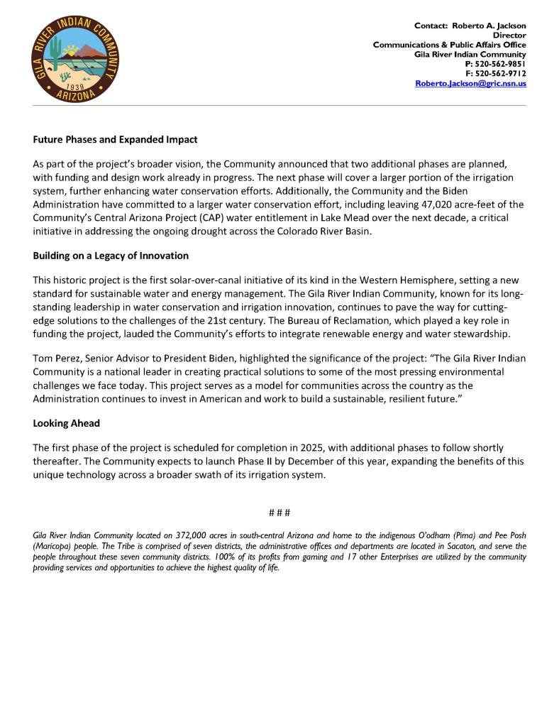 “The Arizona Water Settlements Act states that the United States — on behalf of the San Carlos Apache Tribe — or the tribe itself can assert any claim against any party, including any claim for water rights, injury to water rights, or injury to water quality,” she said. “Even though the San Carlos Apache Tribe is a non-signatory to the CUFA, this does not preclude them from asserting their rights.”