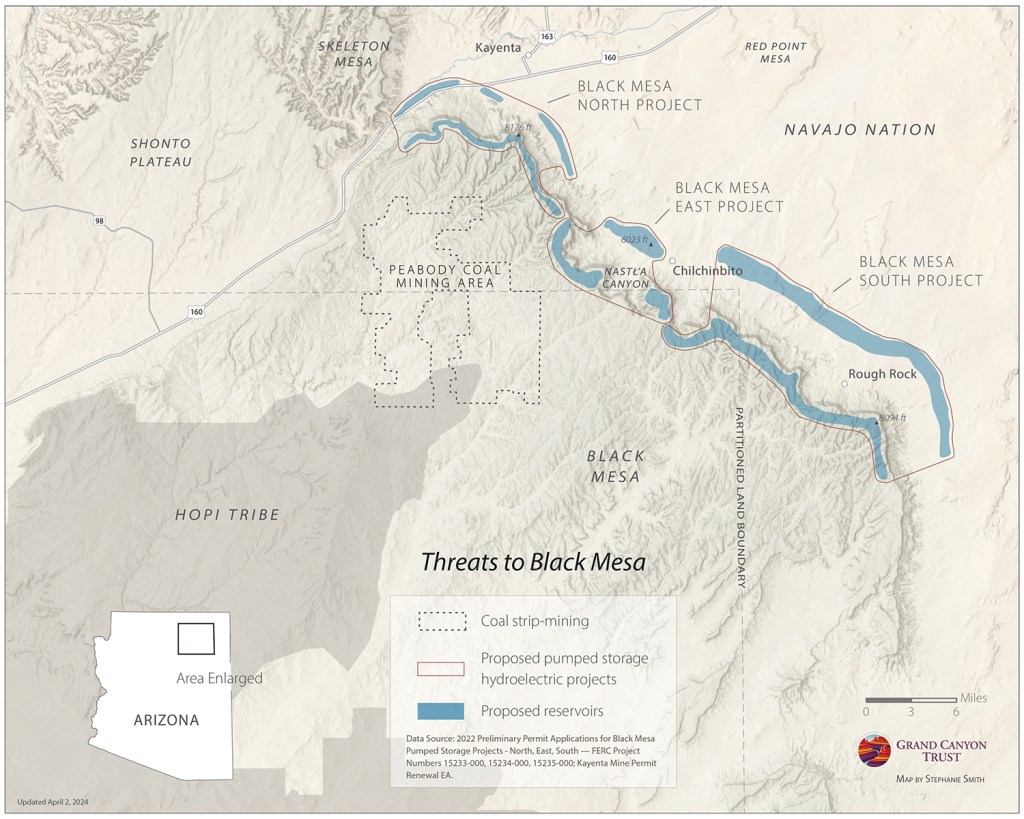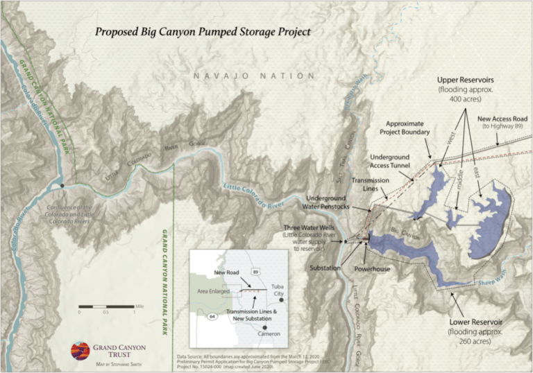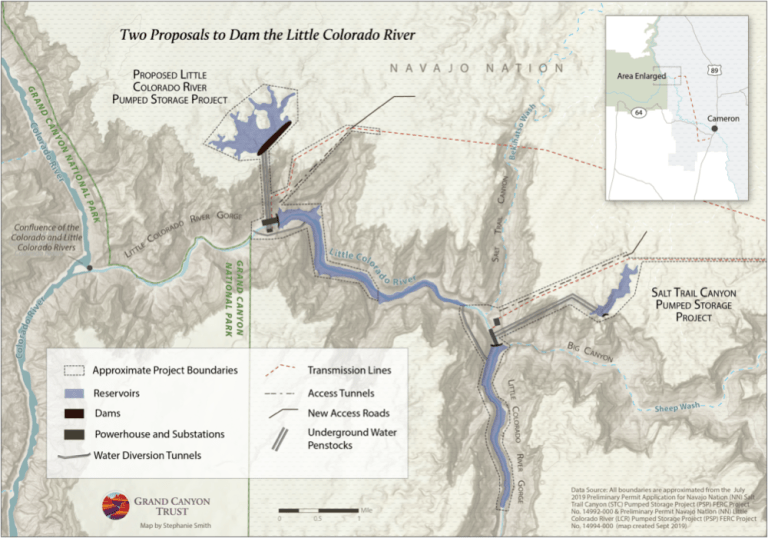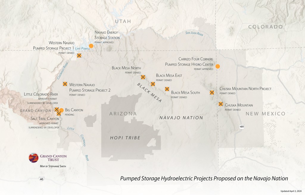 Pumped Hydro Storage LLC sent two letters to the Federal Energy Regulatory Commission (FERC) requesting the permits for its Little Colorado River and Salt Trail Canyon proposals be surrendered, citing strong opposition from the Navajo Nation, environmentalists, and others, as well as investment risks. This news comes two years after the developer first proposed the projects on Navajo Nation land in a region of deep cultural importance to many tribes.