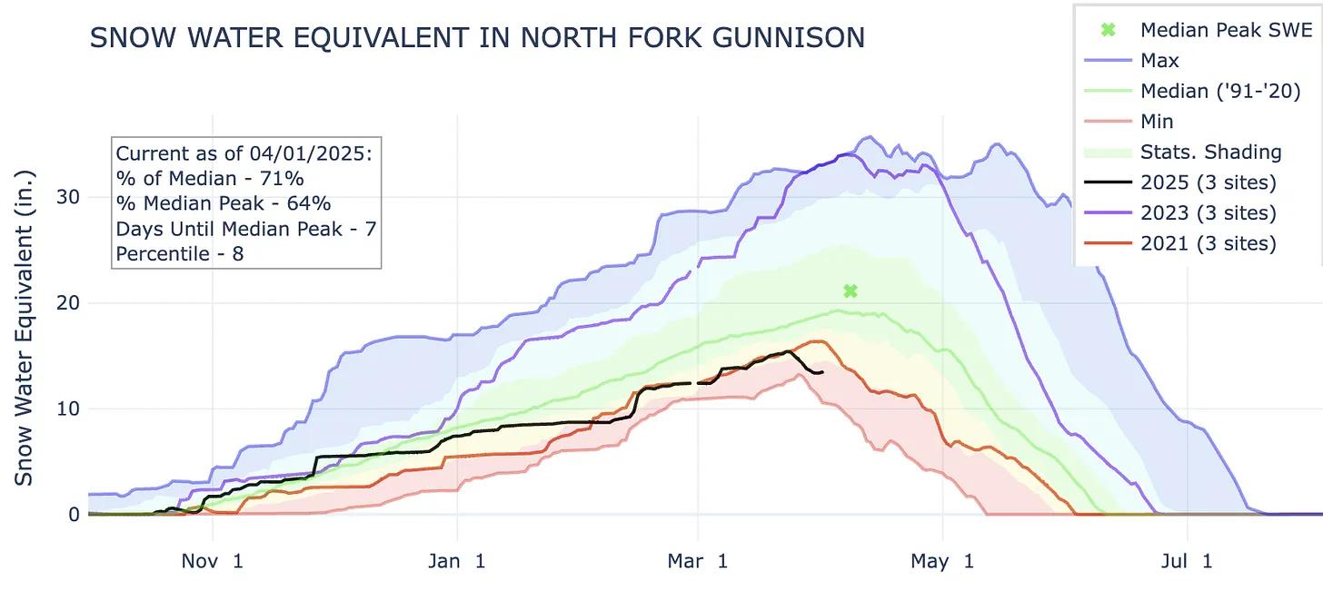 The North Fork of the Gunnison has followed a snow accumulation pattern similar to the Upper Colorado River’s.