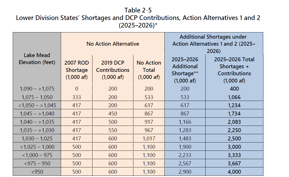โThe alternatives discussed in the SEIS will look familiar to those who have followed the river news for the pastย coupleย months; they areย similar toย the plans for large reductions created by the seven River Basin states: one plan by six of the states, the other by the seventh, California.ย One of the Bureauโs โaction alternativesโ divides the big cuts equitably among the three states based on the size of their allotments, like the six statesโ plan; the other adheres mostly to priority of water rights in dishing out the cuts, like the California plan.