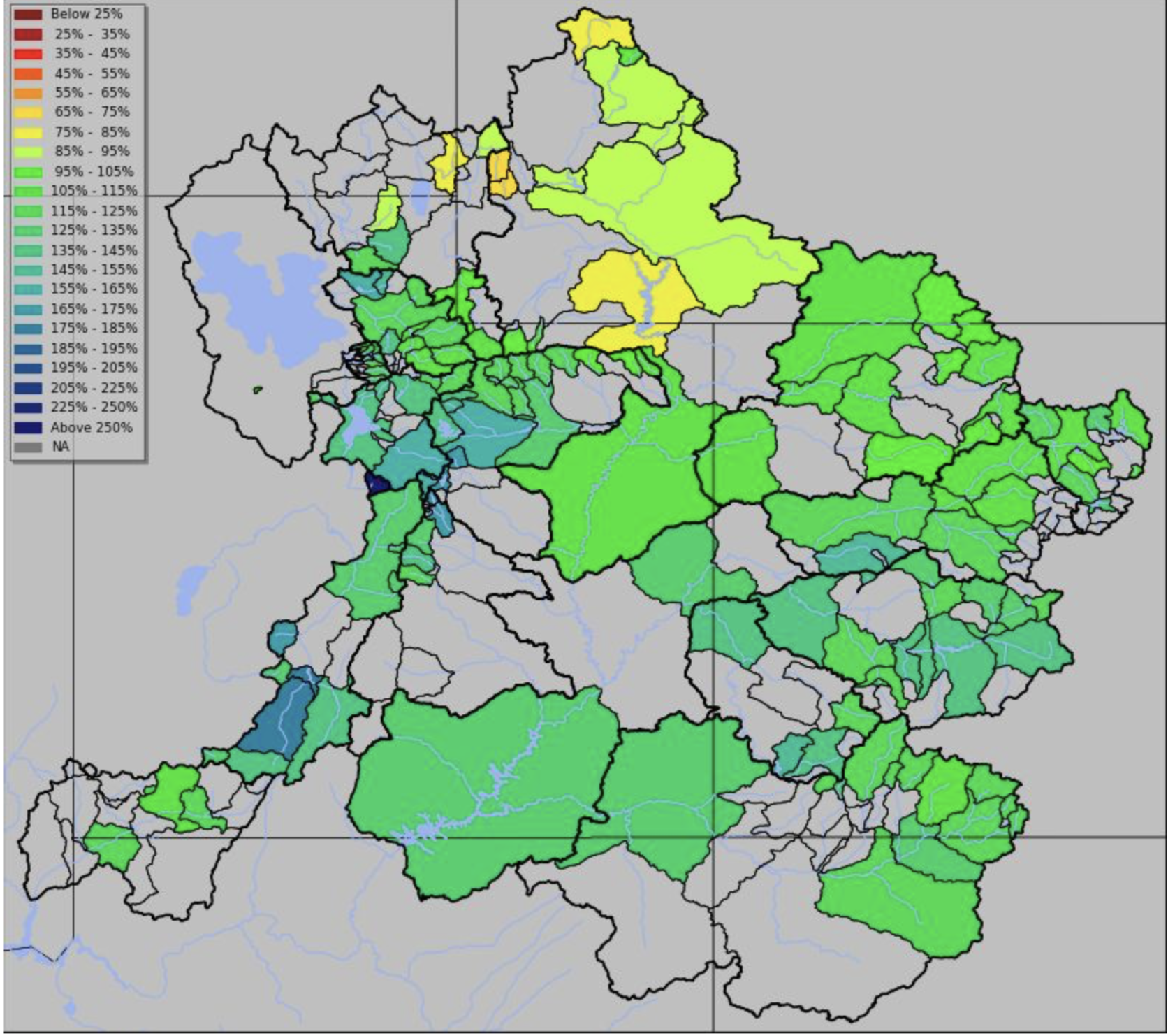March was cooler than normal over most of the CBRFC forecast area. This acted to preserve snowpack, even at lower elevations, that will contribute to the overall April-July runoff volumes…