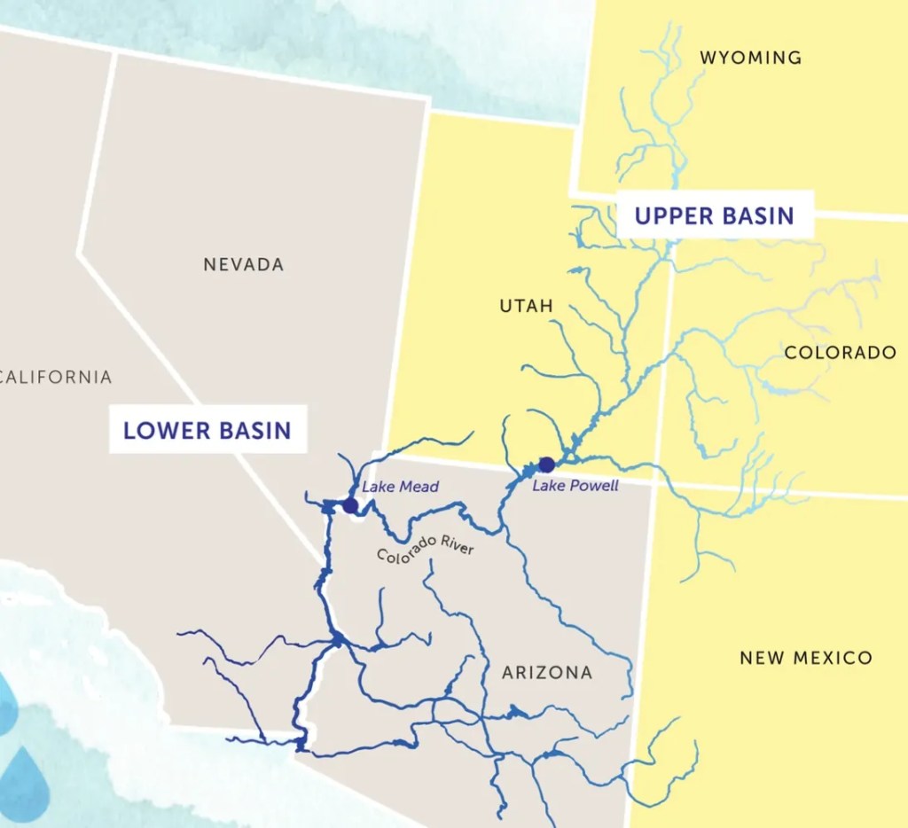 The reauthorization of System Conservation comes at a pivotal moment for water users on the Colorado River. Negotiations between the Upper Basin states and the Lower Basin states (California, Arizona, Nevada) on how shortages will be shared after 2026 have ground to a halt. Lower Basin water managers say all seven states that use the Colorado River must share cuts under the driest conditions, while Upper Basin officials maintain they already take cuts in dry years because they are squeezed by climate change and can’t rely on the massive storage buckets of Lake Powell and Lake Mead for their water supply. Upper Basin leaders also maintain that they shouldn’t have to share additional cuts because their states have never used the entire 7.5 million-acre-foot apportionment given to them by the Colorado River Compact, while the Lower Basin regularly uses its full allotment.
