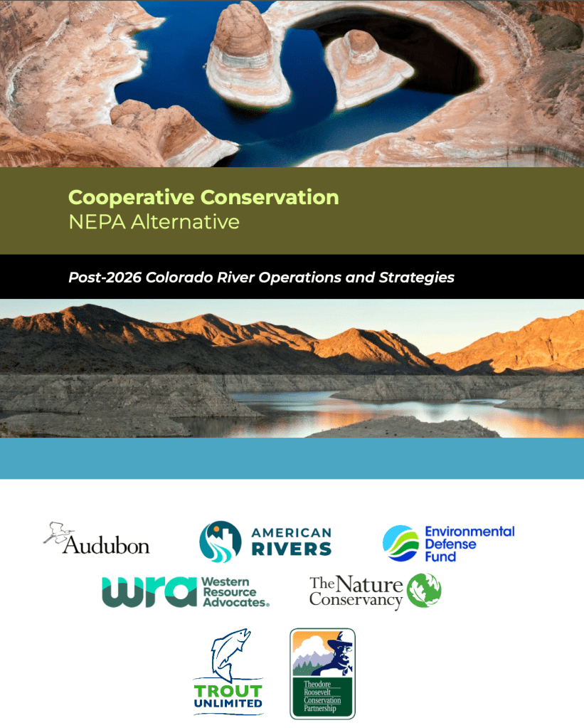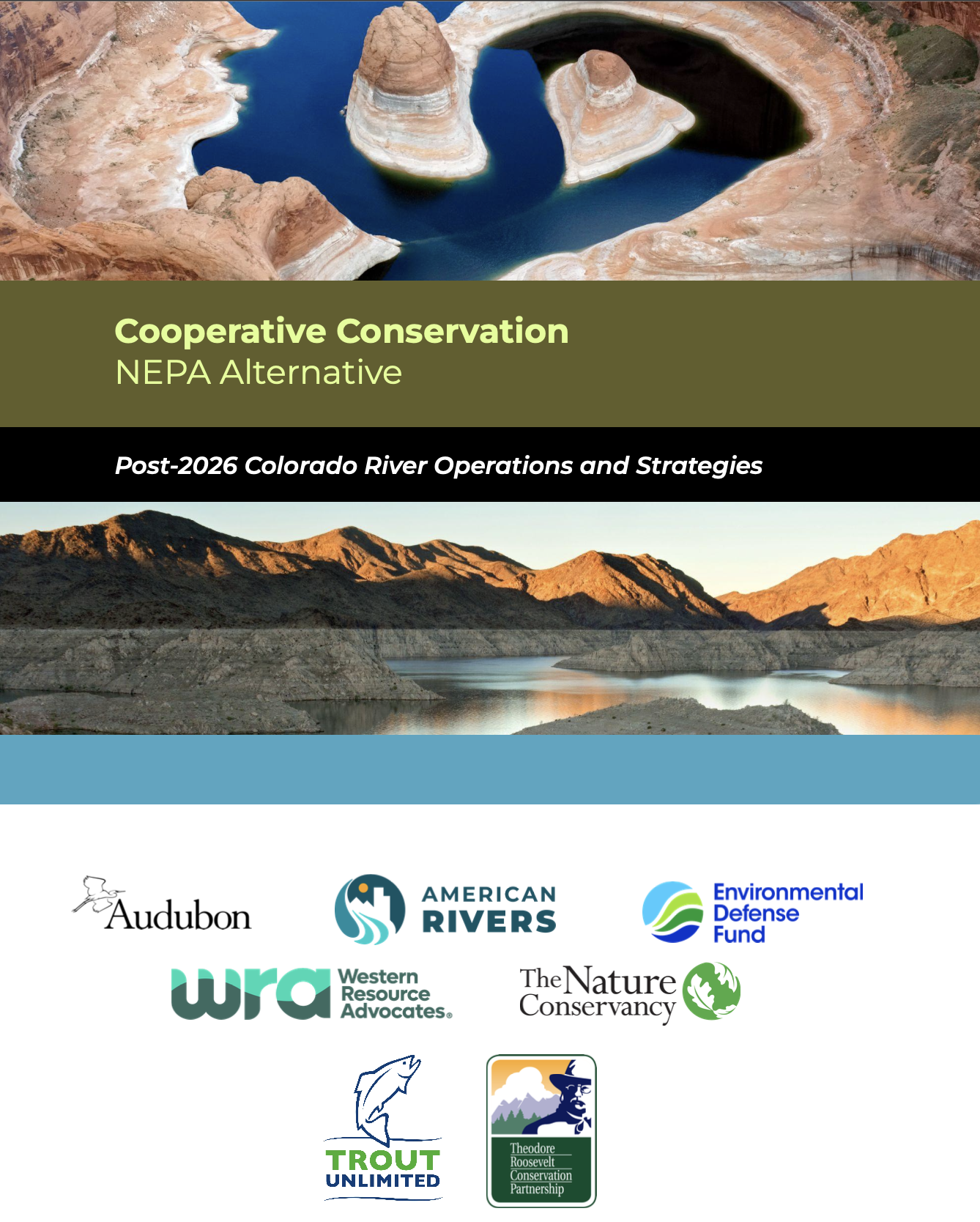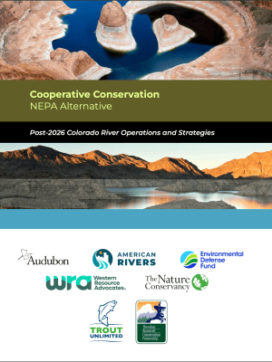 Cooperative Conservation Alternative – This alternative is informed by a proposal submitted by a consortium of conservation organizations with the goal of stabilizing system storage, integrating stewardship and mitigation strategies of Lake Powell and Lake Mead, maintaining opportunities for binational cooperative measures, incentivizing water conservation, and designing flexible water management strategies.