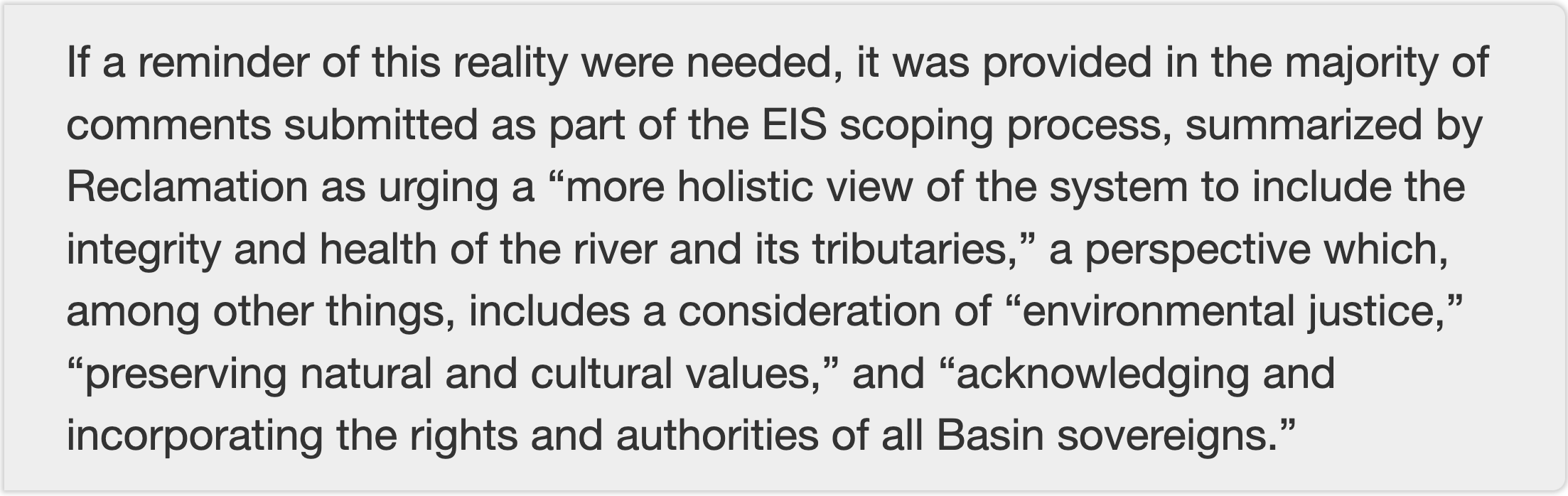 One new detail for the Colorado experts who reviewed the report was the duration of the next management plan: Reclamation wants it to last for at least 20 years after 2026. It is unlikely to be a short-term, interim plan to give negotiators more time to reach a unified agreement.
