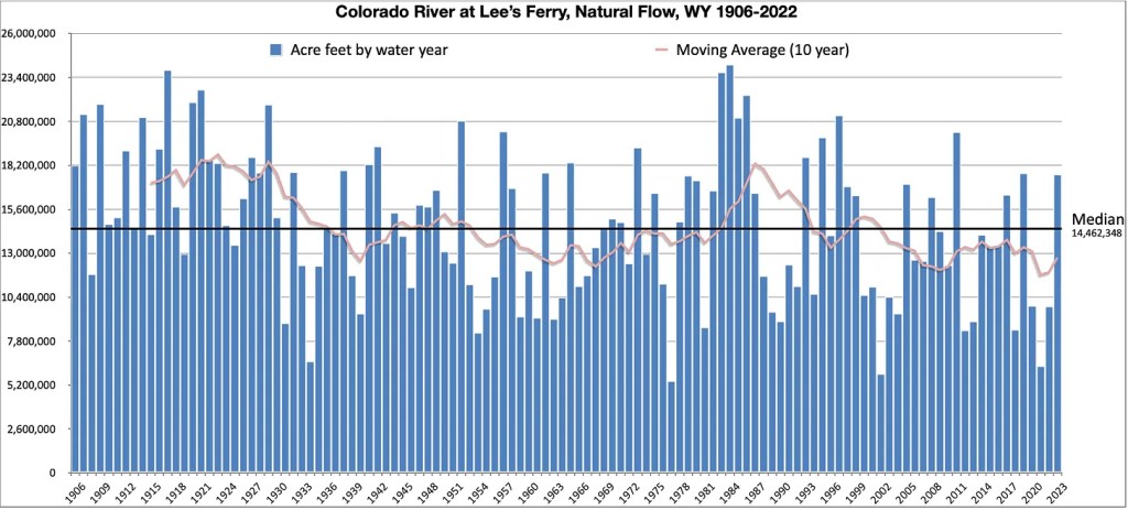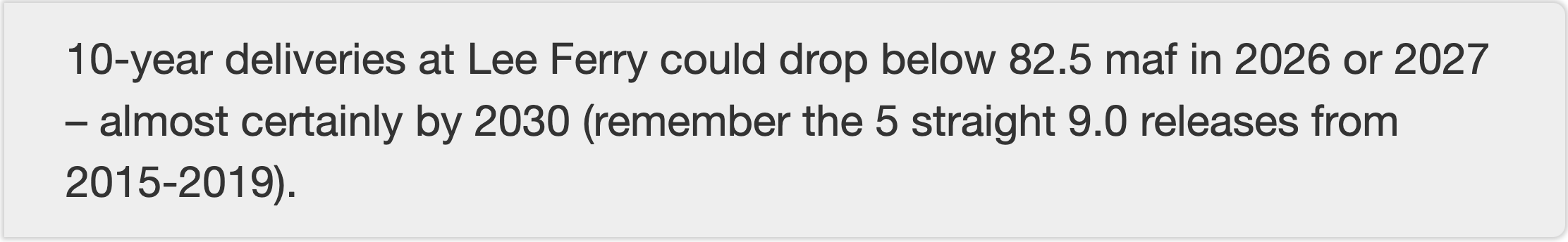 It is possible that Lower Basin use is gonna drop more this year than the official forecast suggests, that the current talking now underway will yield more water use reductions. I keep hearing that. I keep not seeing it in the official numbers.