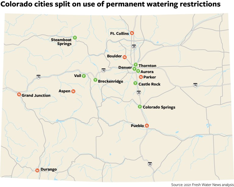 That was one big reason Thornton adopted permanent watering rules in March, where watering is limited to three days per week between 6 p.m. and 10 a.m. At the same time, the city also updated its code to include beefed-up enforcement measures for leaks and other water-wasting behaviors.