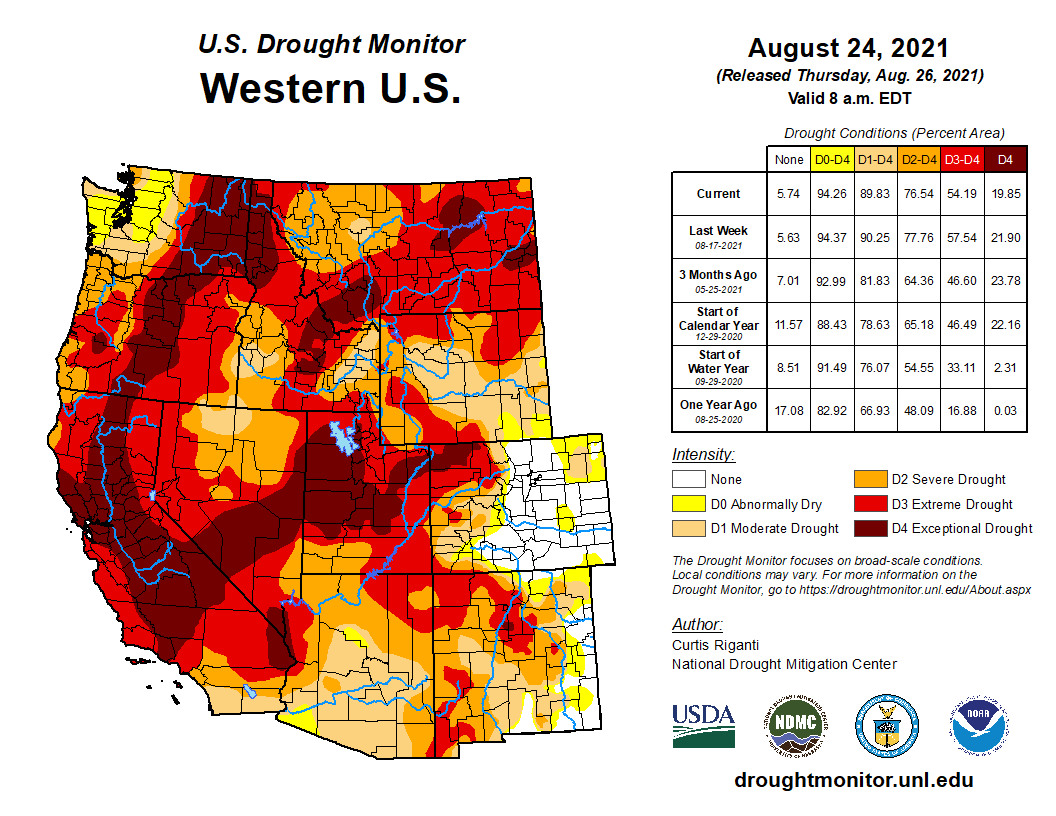 The NIDIS website notes that under a moderate drought stage dry-land crops may suffer, rangeland growth is stunted, very little hay is available and risk of wildfires may increase.