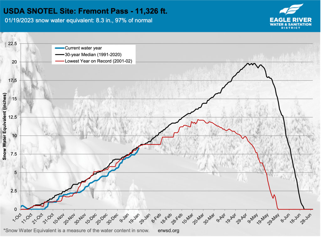 The latest data from snow measurement sites on Vail Mountain, Copper Mountain — the nearest measurement site to Vail Pass — and Fremont Pass — the closest site to the headwaters of the Eagle River — shows snowpack is far below the 30-year averages.
